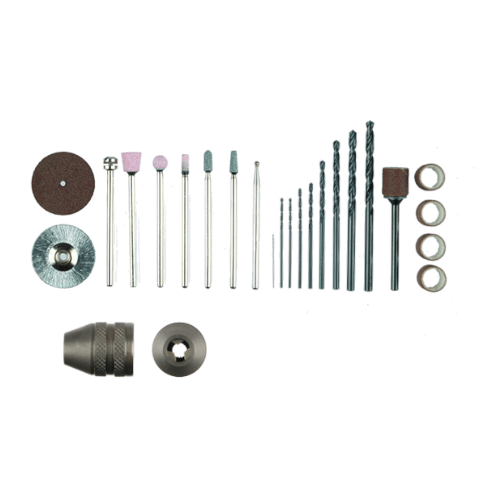 Saatavana kahtena versiona: MM 80/E tarkkuussarja MICROMOT-istukoilla tai MM 80/EF yleissarja joustavalla poraistukalla. Mukana aloitussarja tarvikkeita. Kaikki säilytetään siististi uudessa MICROMOT-säilytyslaatikossa.